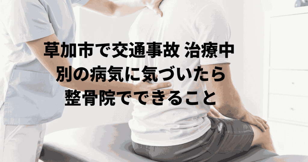 この記事では、草加市で交通事故後の治療中に別の病気が出たときの注意点や対処法を、整骨院の専門的な視点から解説します。
