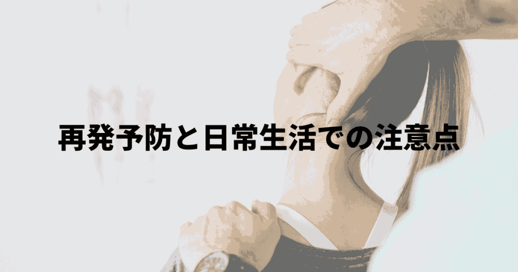 これらを意識することで、ムチ打ちの痛みを予防し、再発リスクを減らすことができます。